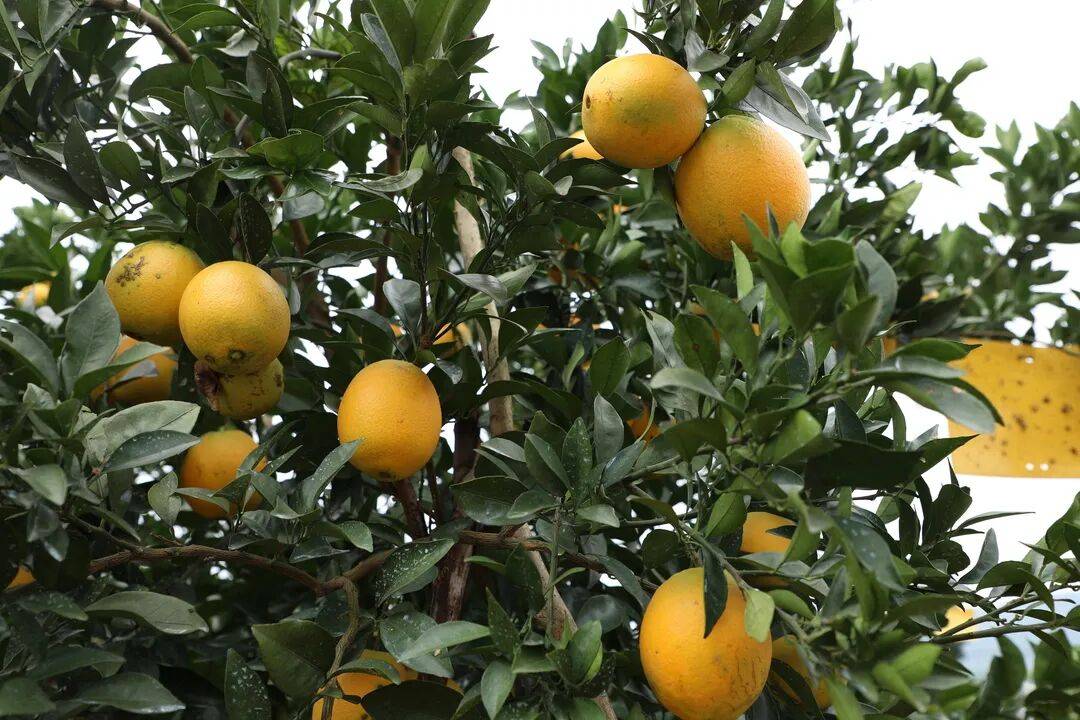 和普通的橙子不同的是,酵素脐橙的果皮是黄绿色的,尽管果实外表看似青涩,实则味甜多汁,且有着成熟早、果渣少、维C丰富等特点,自基地开园就吸引不少游客前来采摘游玩。